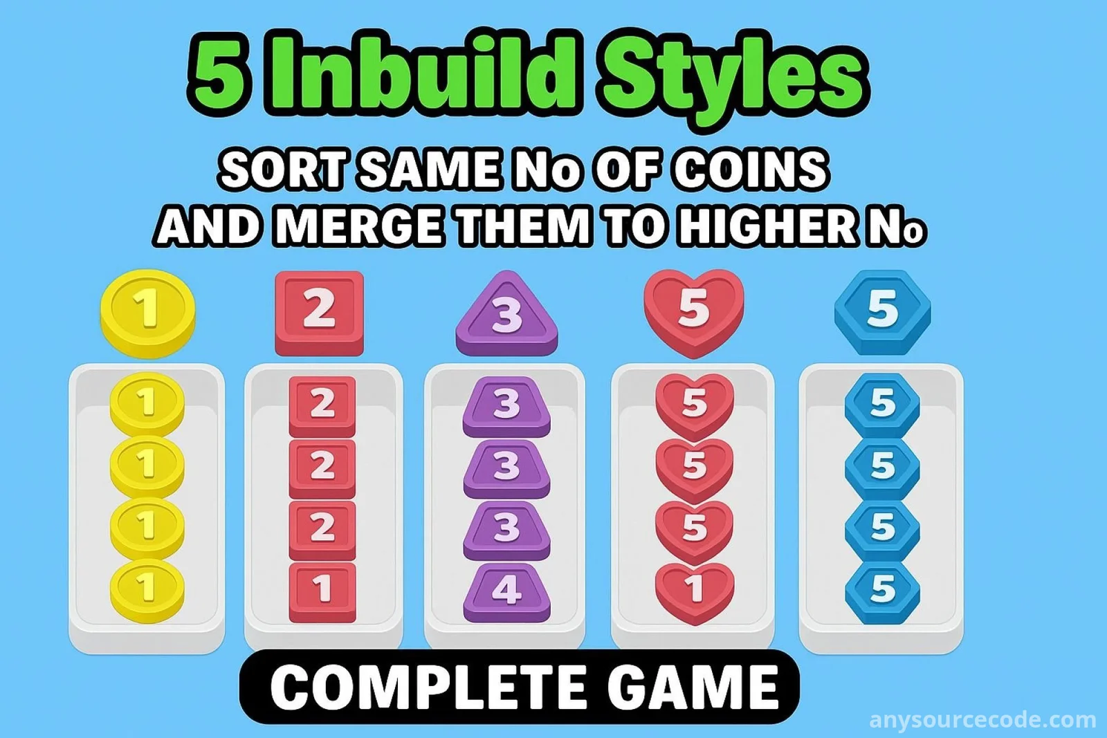 Sort The Coin is a complete Unity puzzle project template that lets you build your own hit “sort & merge” game. Designed for fast reskinning and production use, this template includes a clean structure, easy customization, and detailed documentation. It features a designer-friendly level editor, fair RNG control, and smooth animations powered by DOTween. Whether for Android, iOS, Desktop, or WebGL, this template is perfect for developers looking to launch a scalable and monetizable puzzle game quickly.