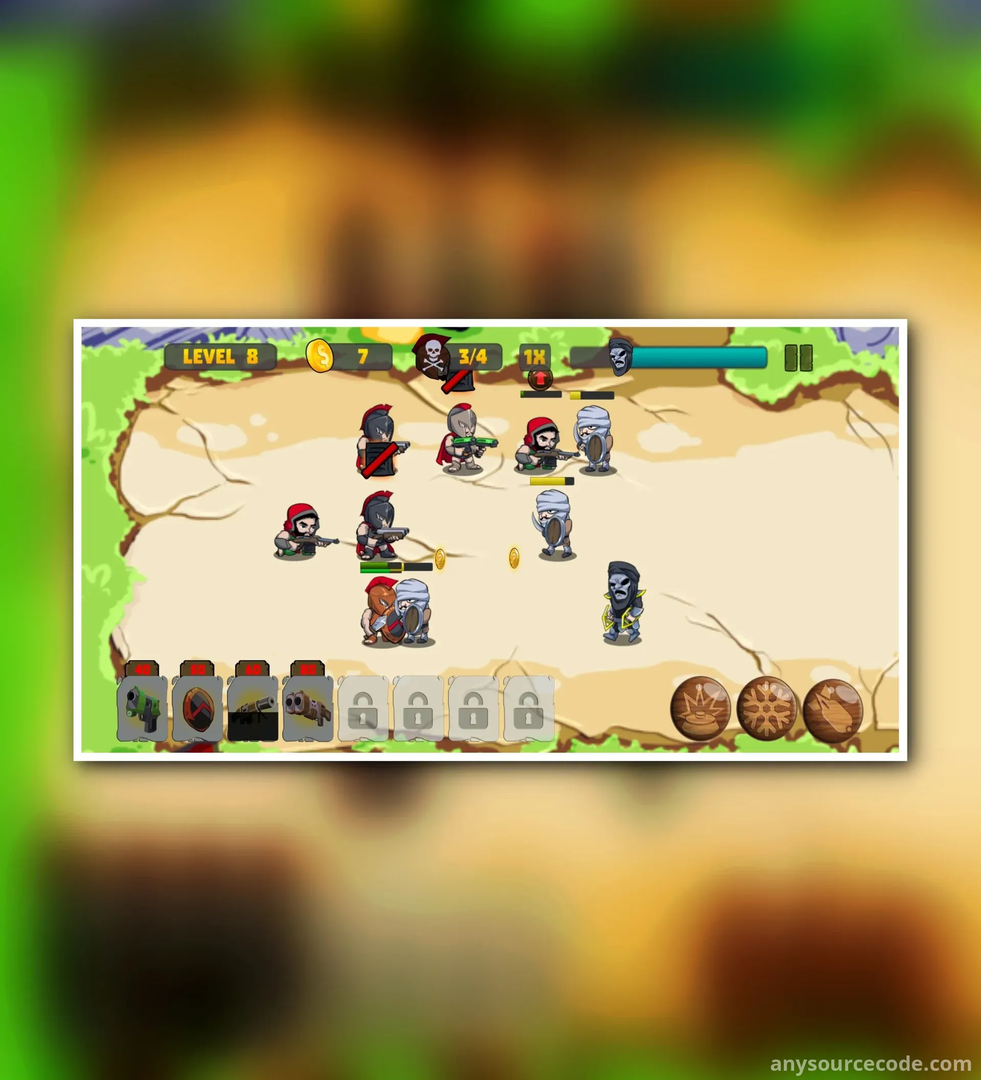 Spartan Defense is an action-packed strategy defense game where you lead Spartan heroes into battle against the Persians. With high-quality graphics and thrilling sound effects, the game offers both fun and challenge for players who enjoy building tactical defenses and planning strategic attacks. Command 8 unique Spartan heroes, train their combat abilities, and upgrade your army to achieve victory across 40 exciting levels. Designed for both casual and hardcore strategy players, this game template is easy to reskin, extend, and monetize.