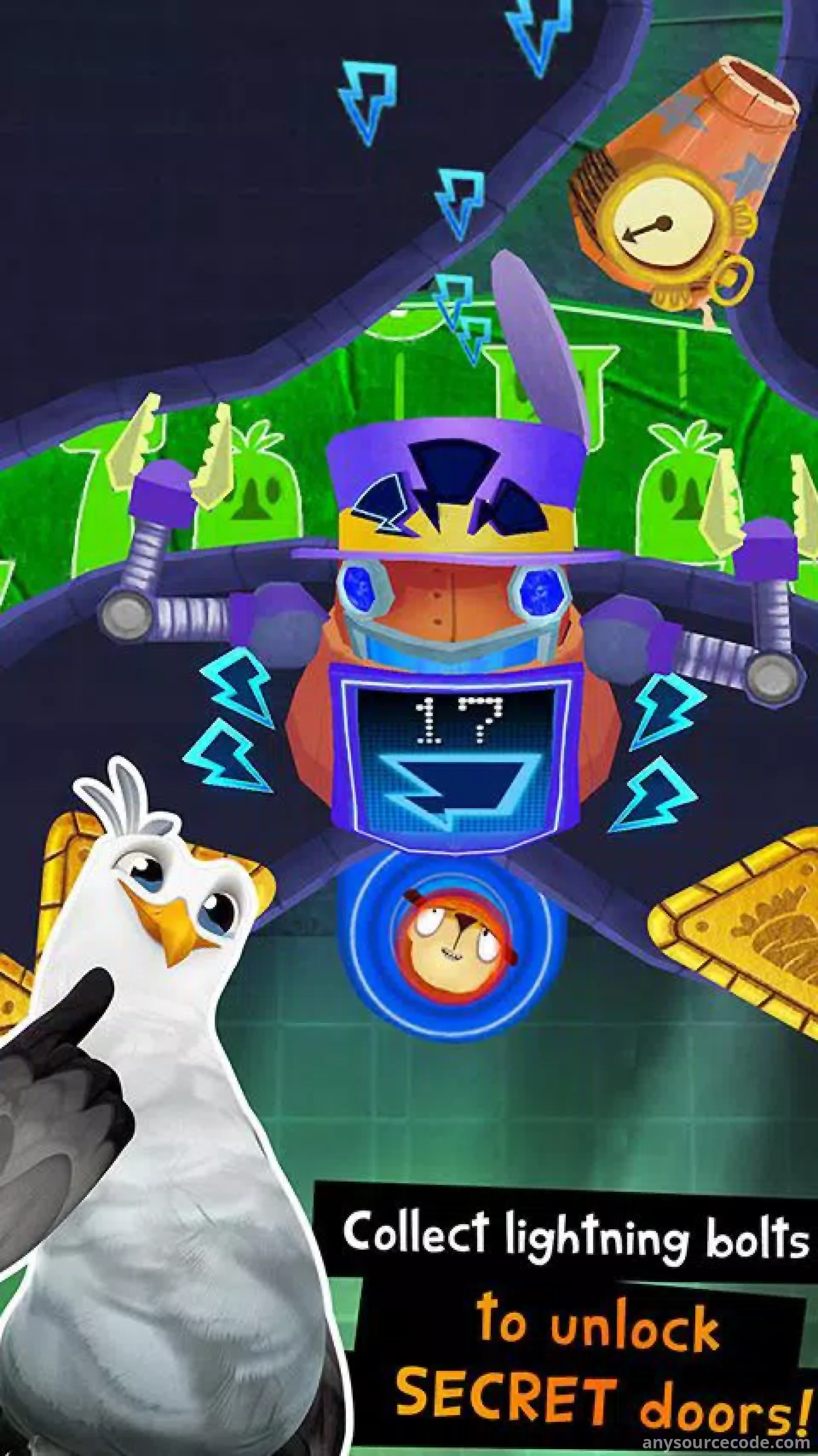 - Collect lightning bolts to unlock features and progress