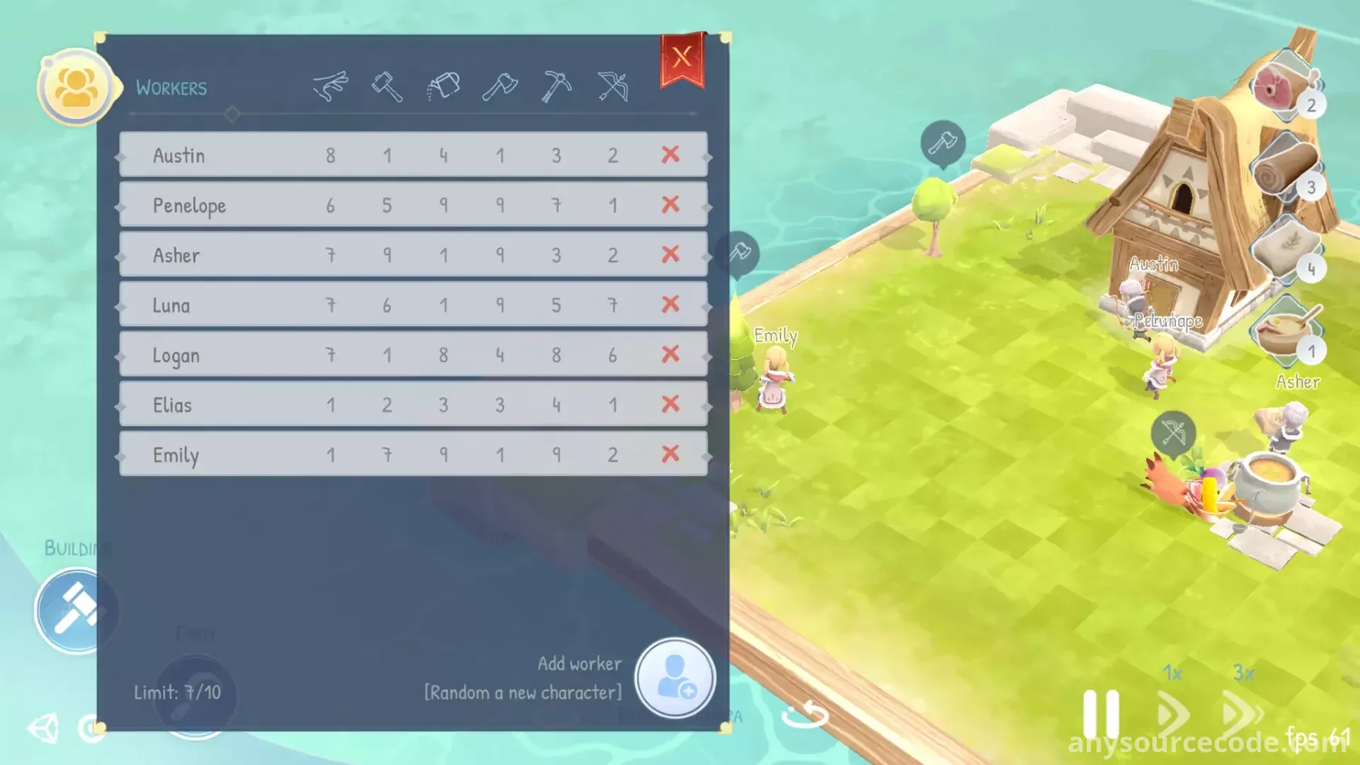 - 3D asset pack with characters, animal, buildings, stones, and trees
