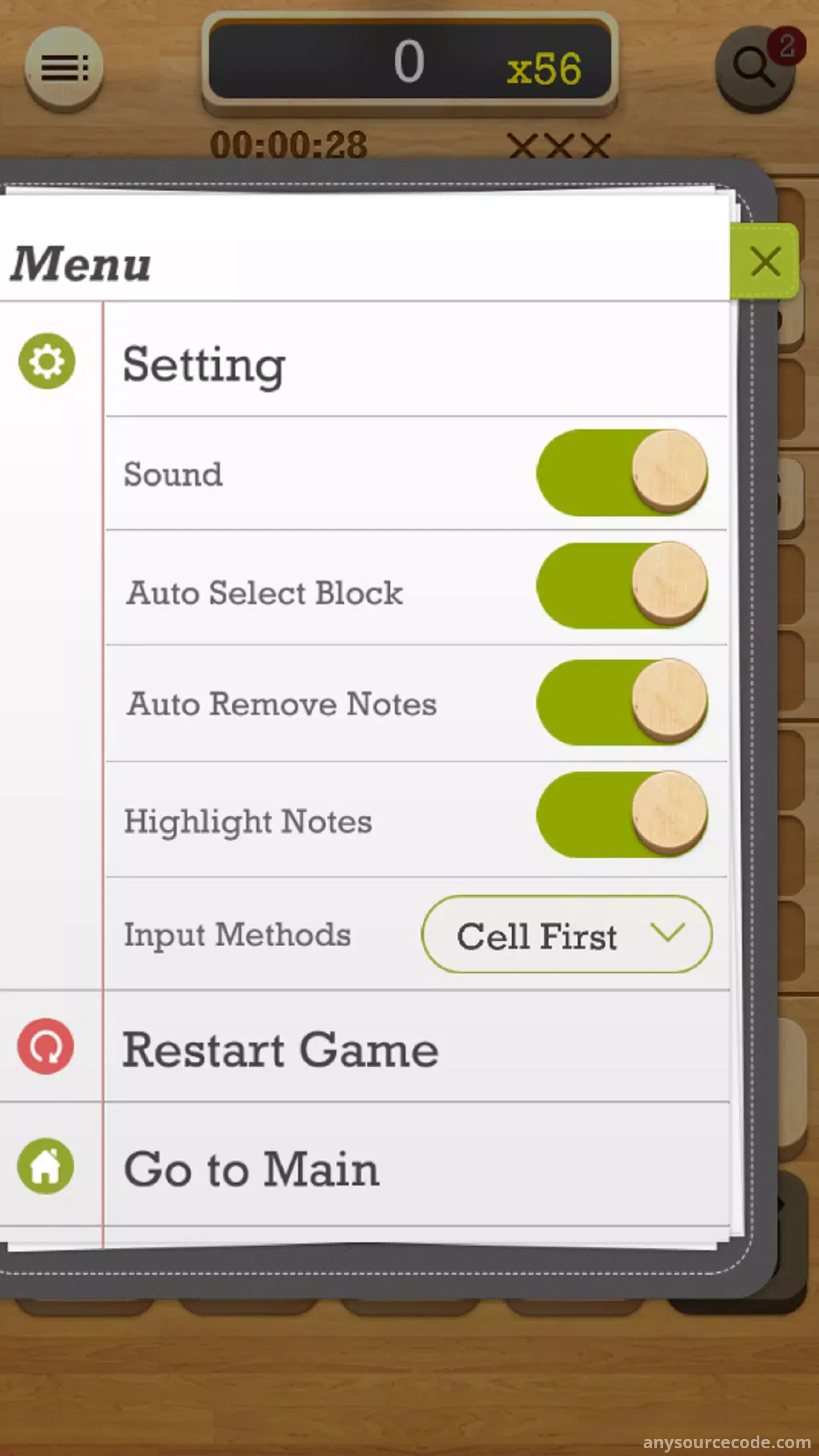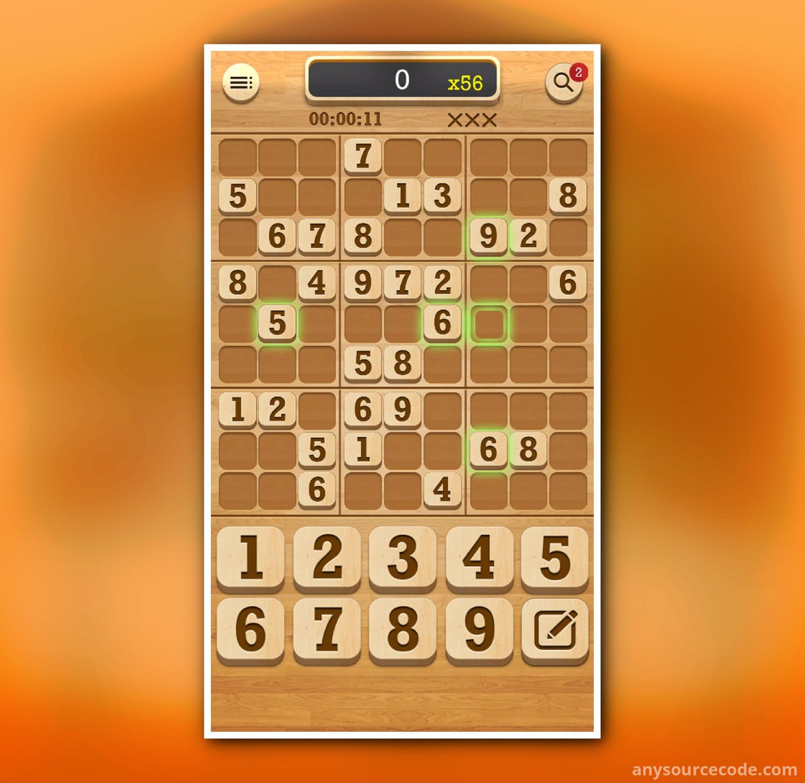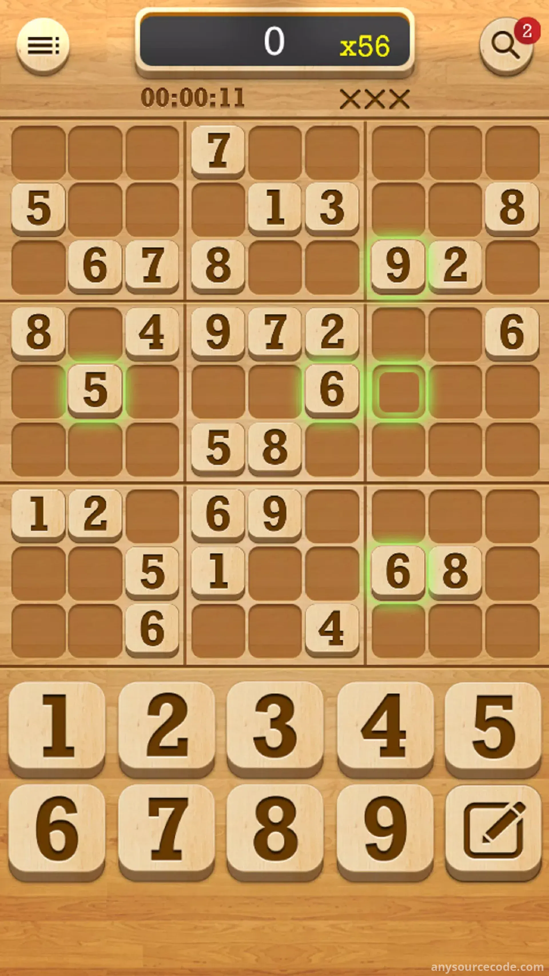 - Classic 9×9 Sudoku puzzle gameplay