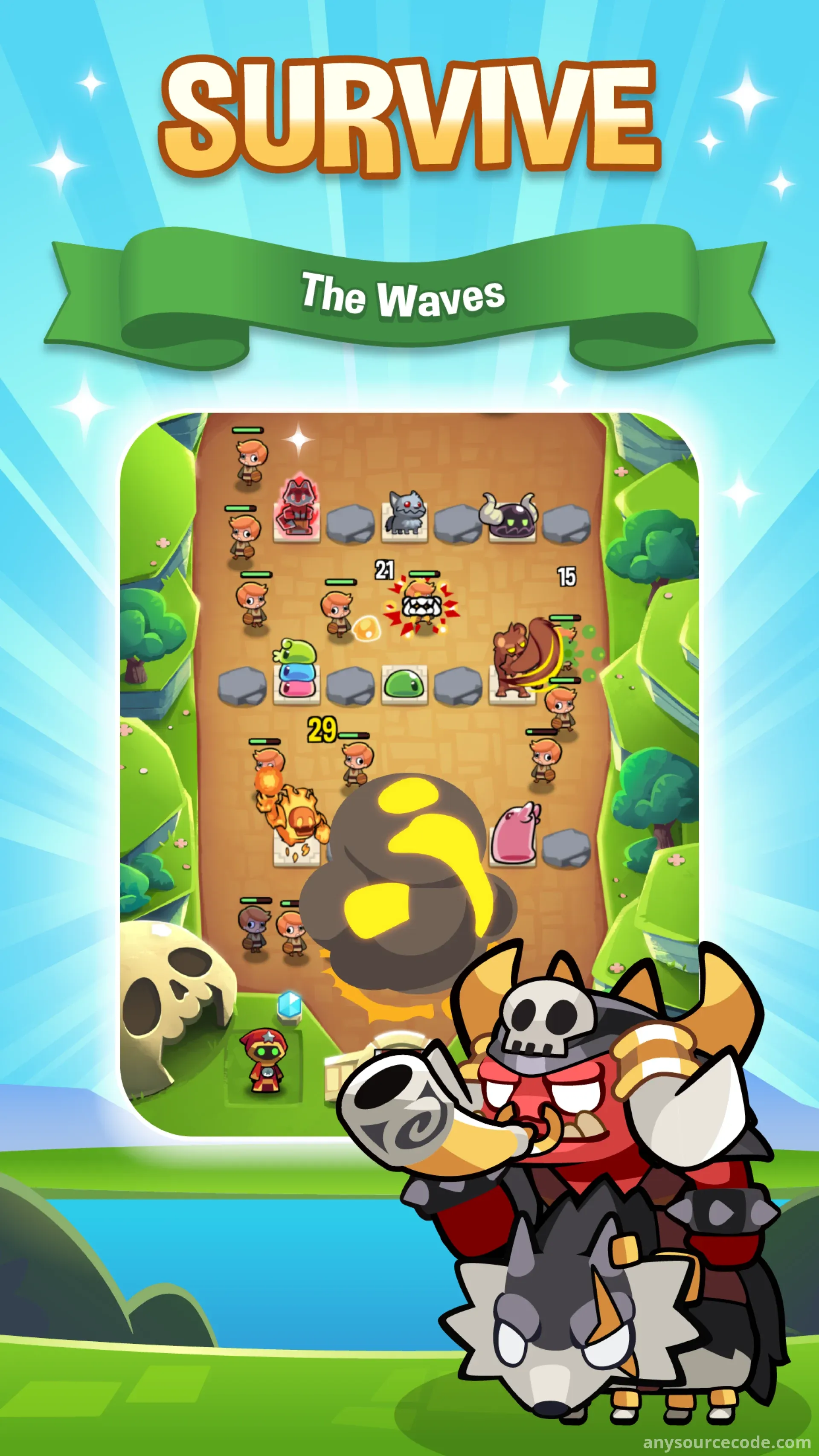 - Strategic placement and combination of heroes to counter enemy waves