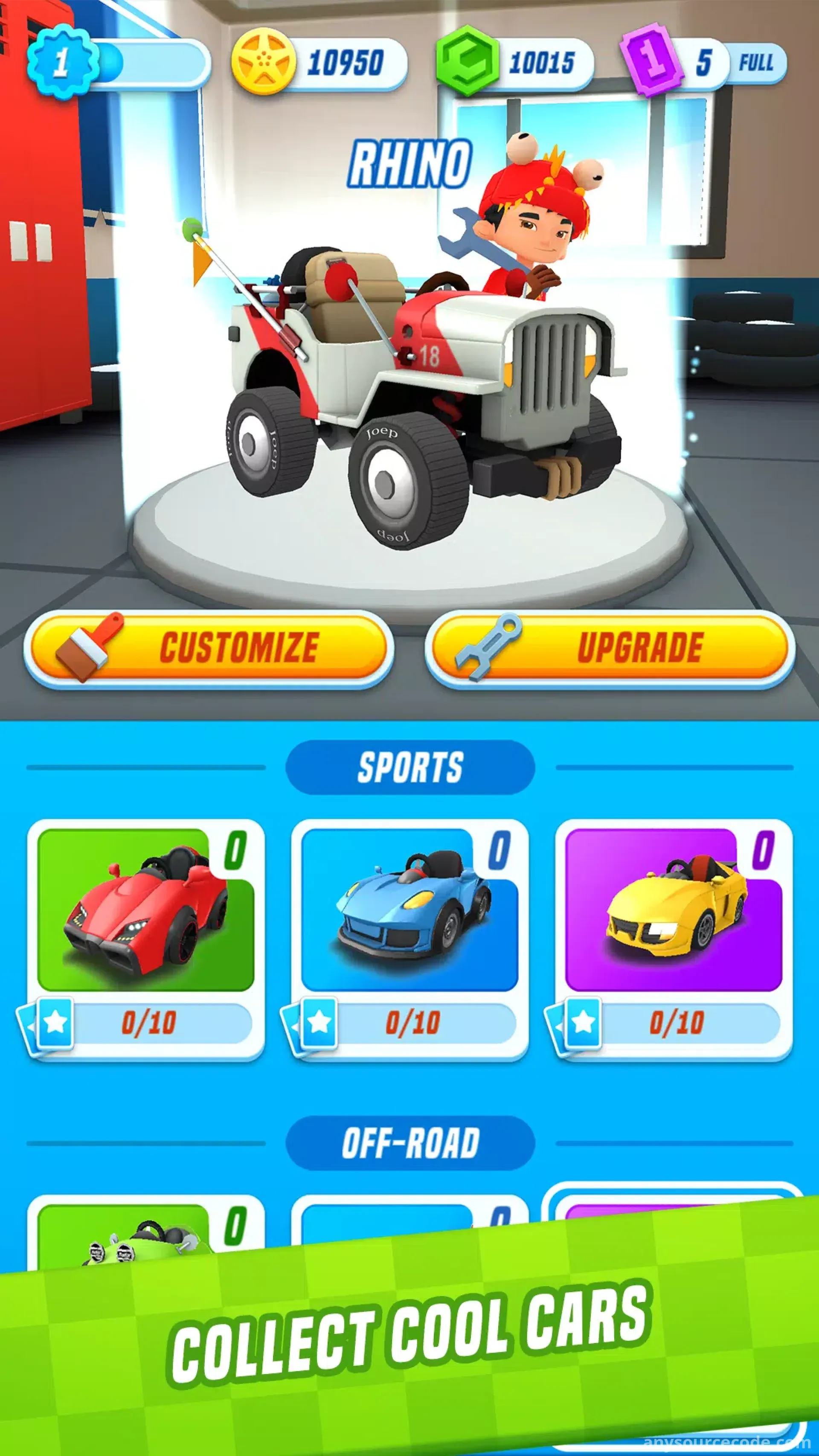 - Collect supercars, off-road vehicles, and sports racers
