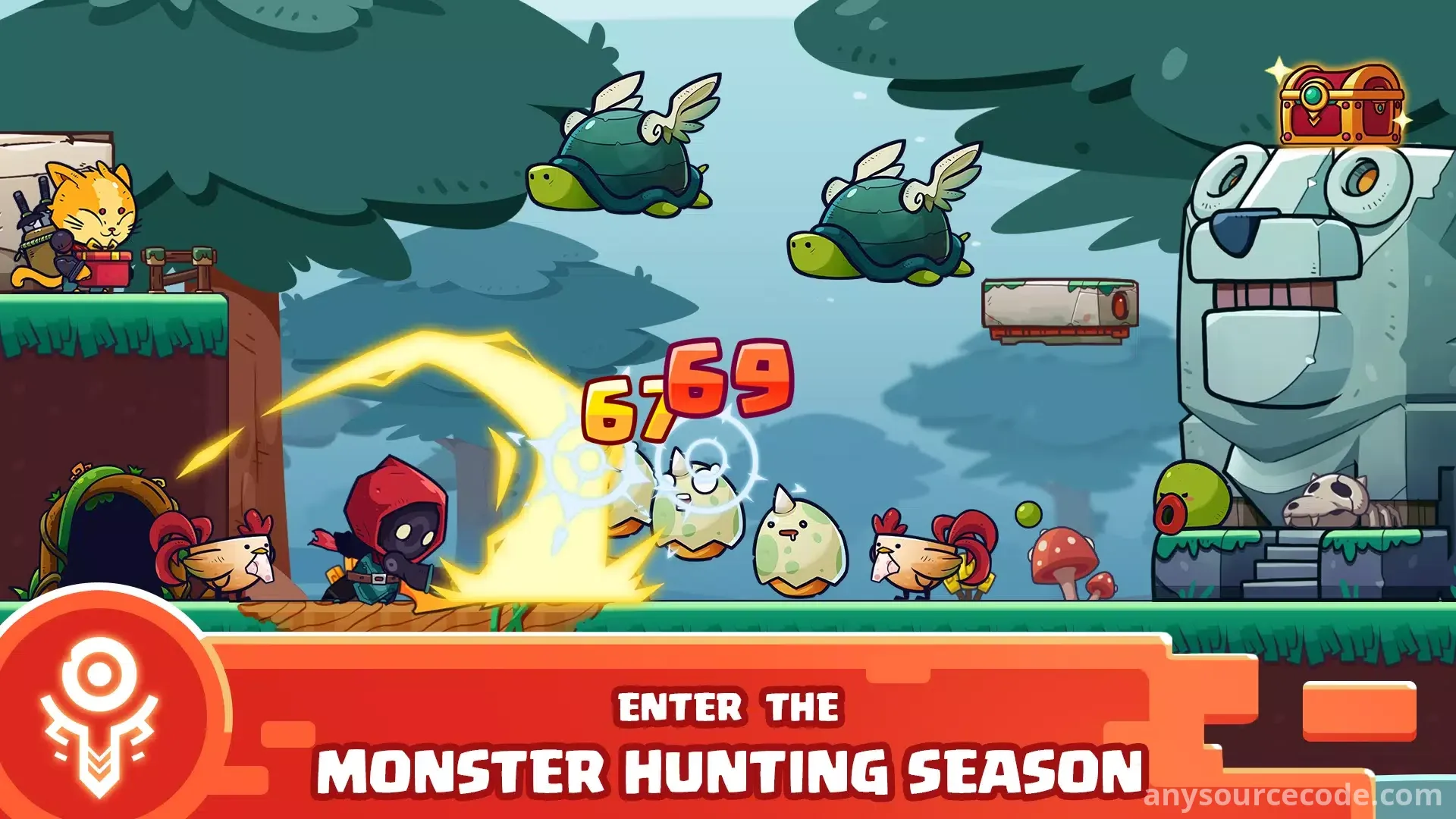 - Hack-and-slash platformer gameplay