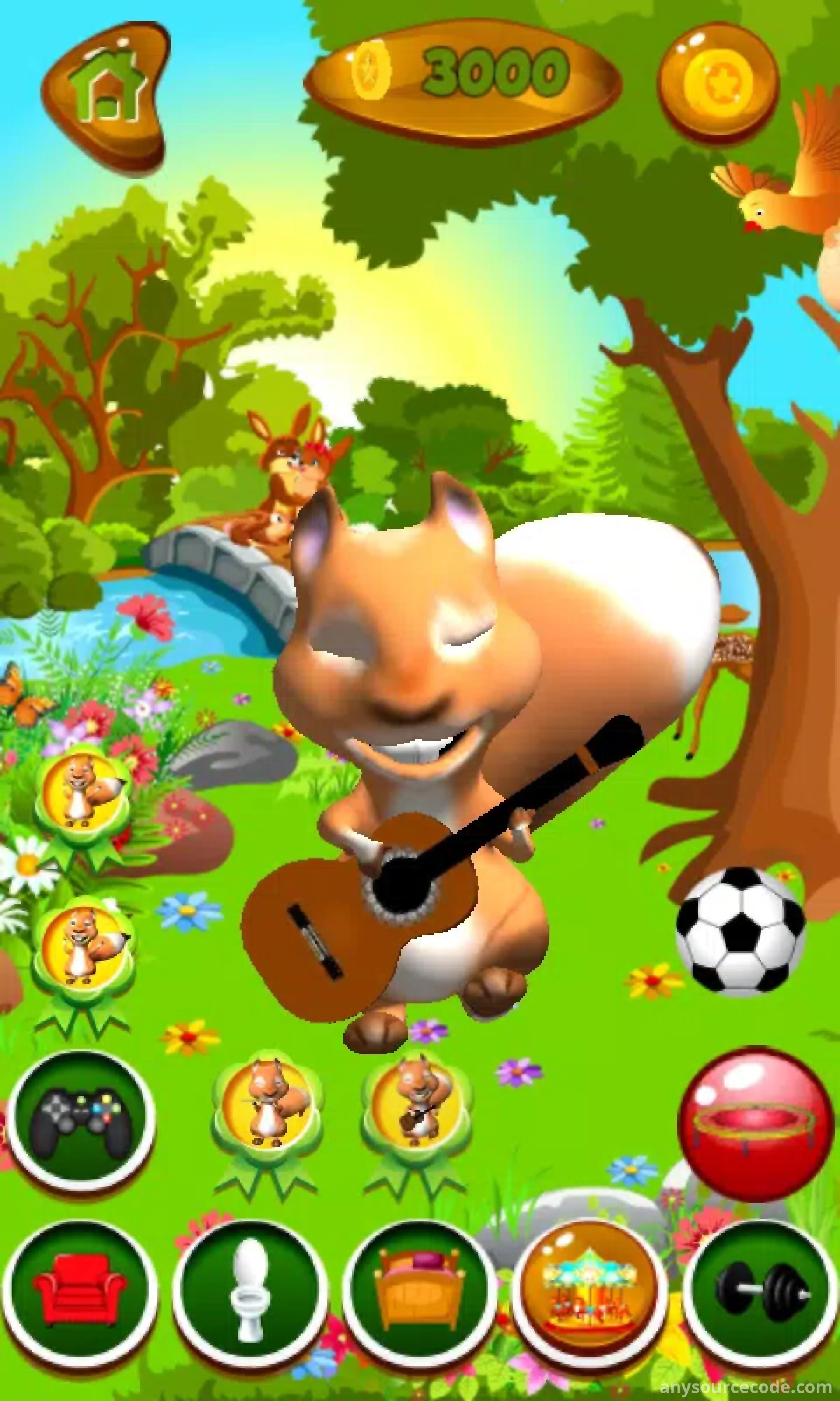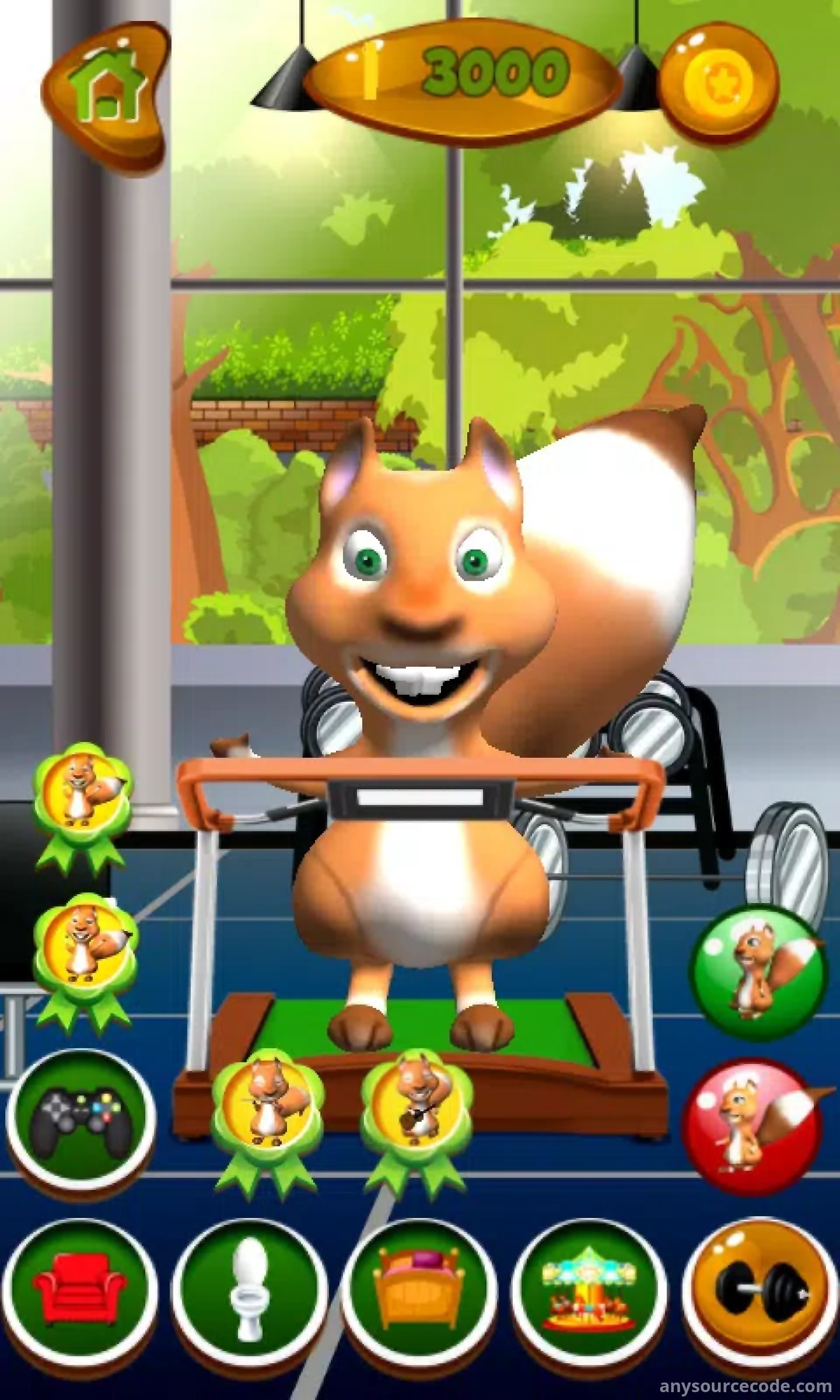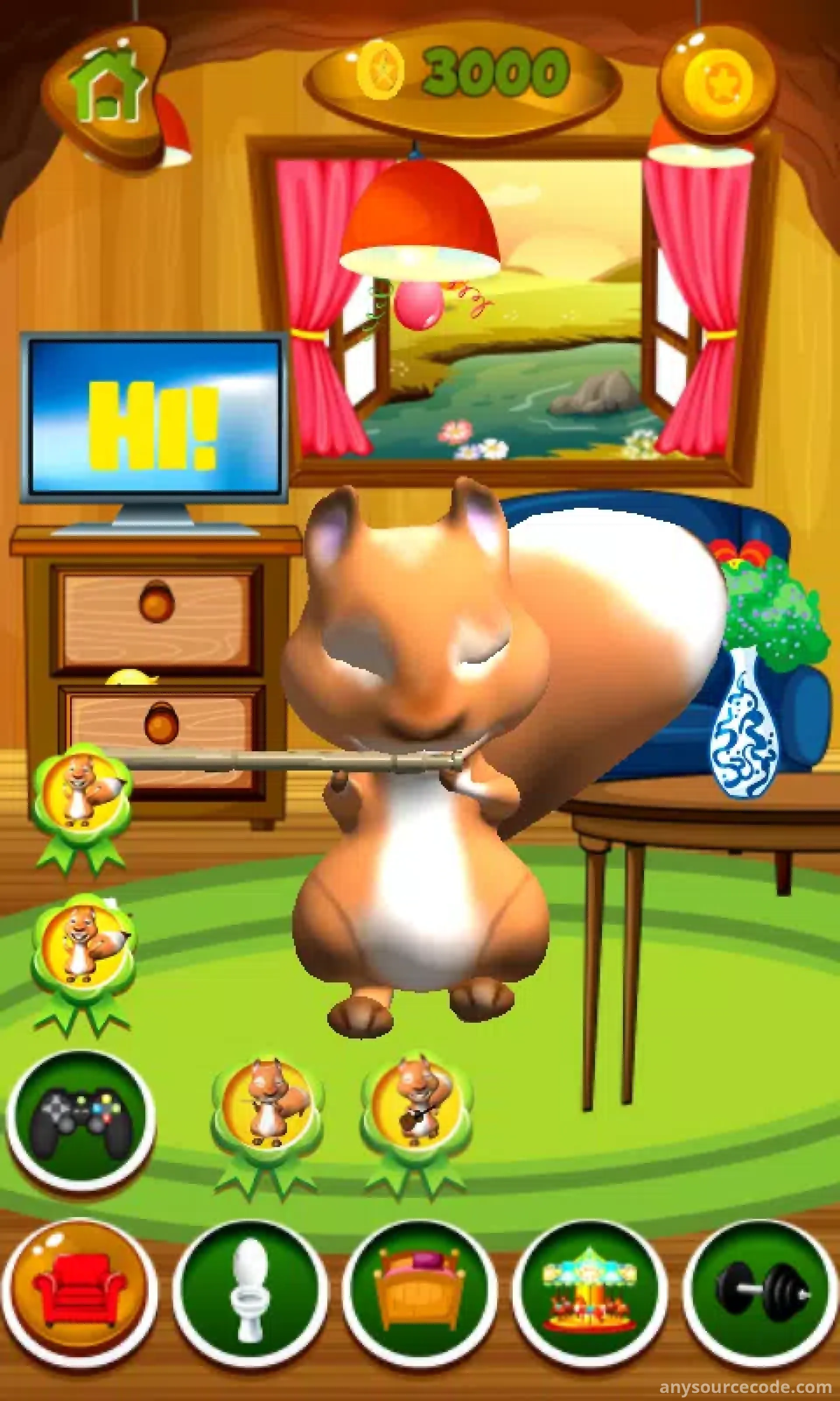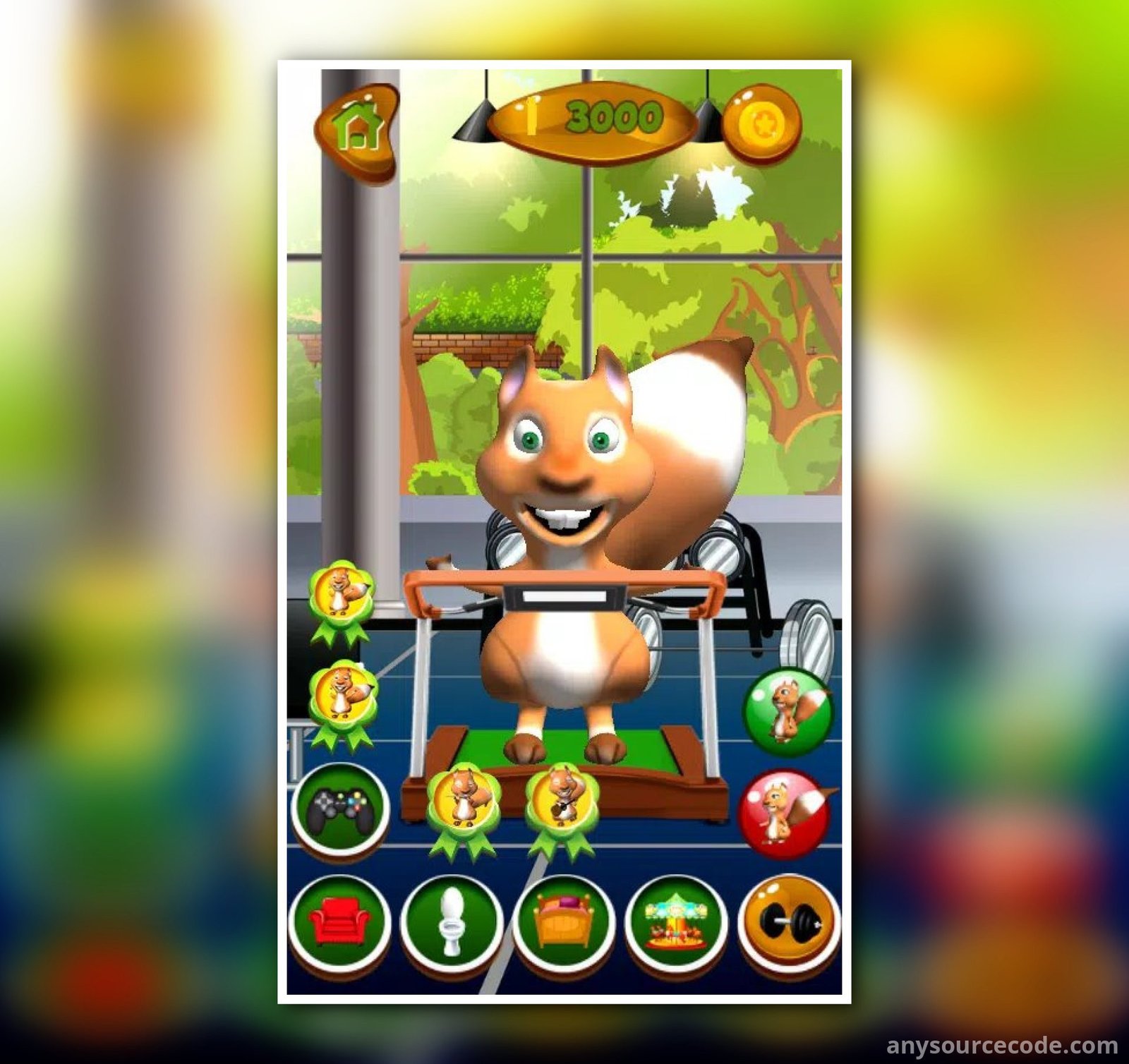 Talking Squirrel brings a fun and lively virtual pet experience to your device. Meet your adorable squirrel friend who lives in a big house full of interactive rooms, playful items, and surprising animations. Talk to him and he will repeat everything you say in a funny voice, watch him dance, play on the trampoline, and explore his many activities.