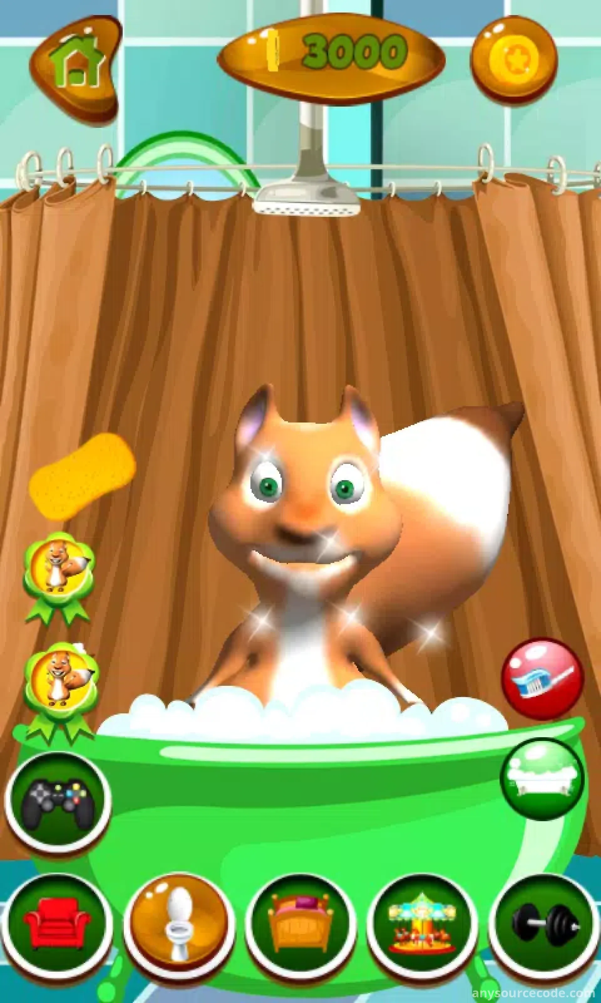 This charming talking pet is suitable for all ages. Play exciting mini-games to collect coins and unlock new rooms. Visit his playground, bathroom, bedroom, and gym, where he enjoys brushing his teeth, exercising, jumping, playing with the ball, and much more. With cute reactions, fun interactions, and addictive gameplay, Talking Squirrel is designed to entertain kids and adults alike.