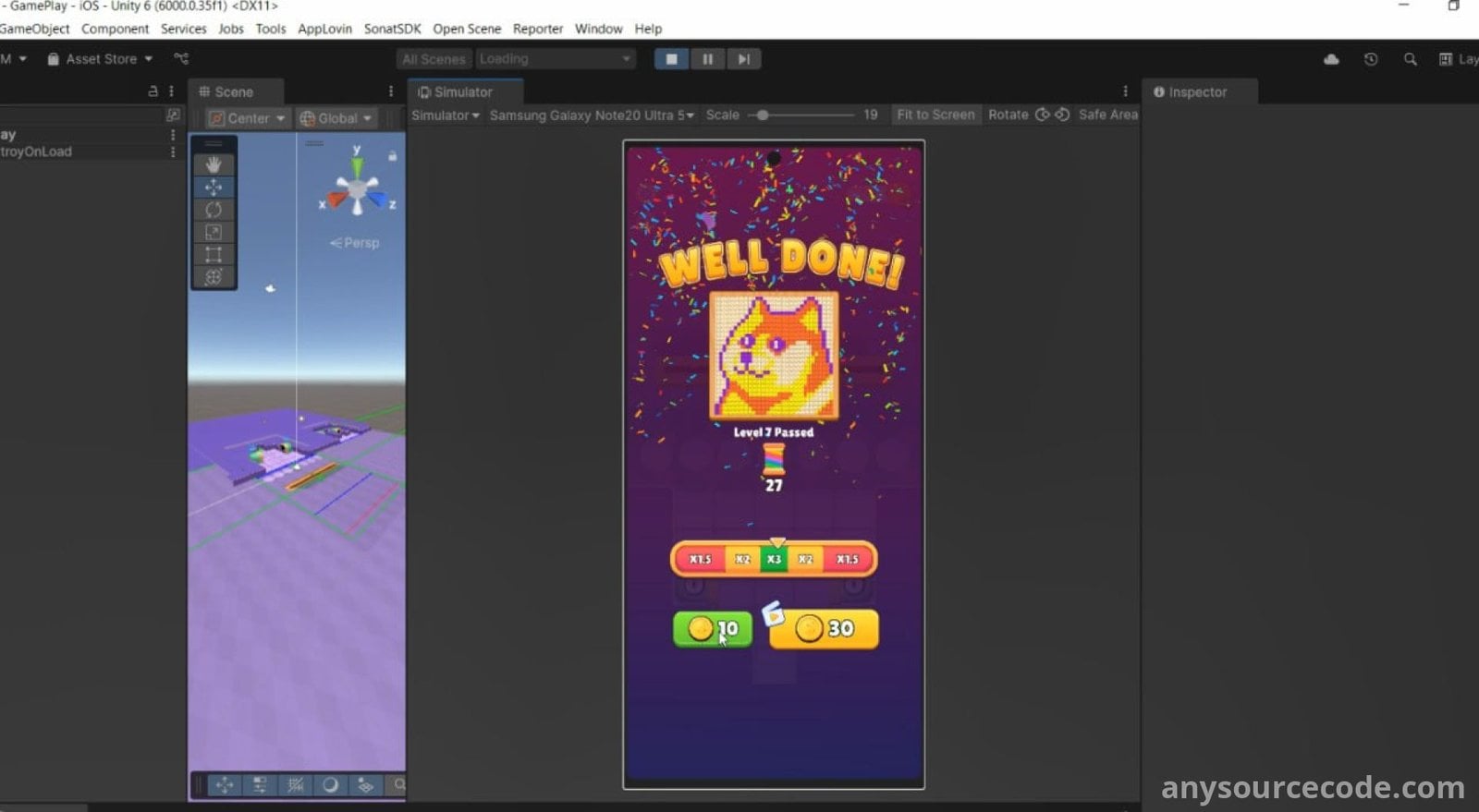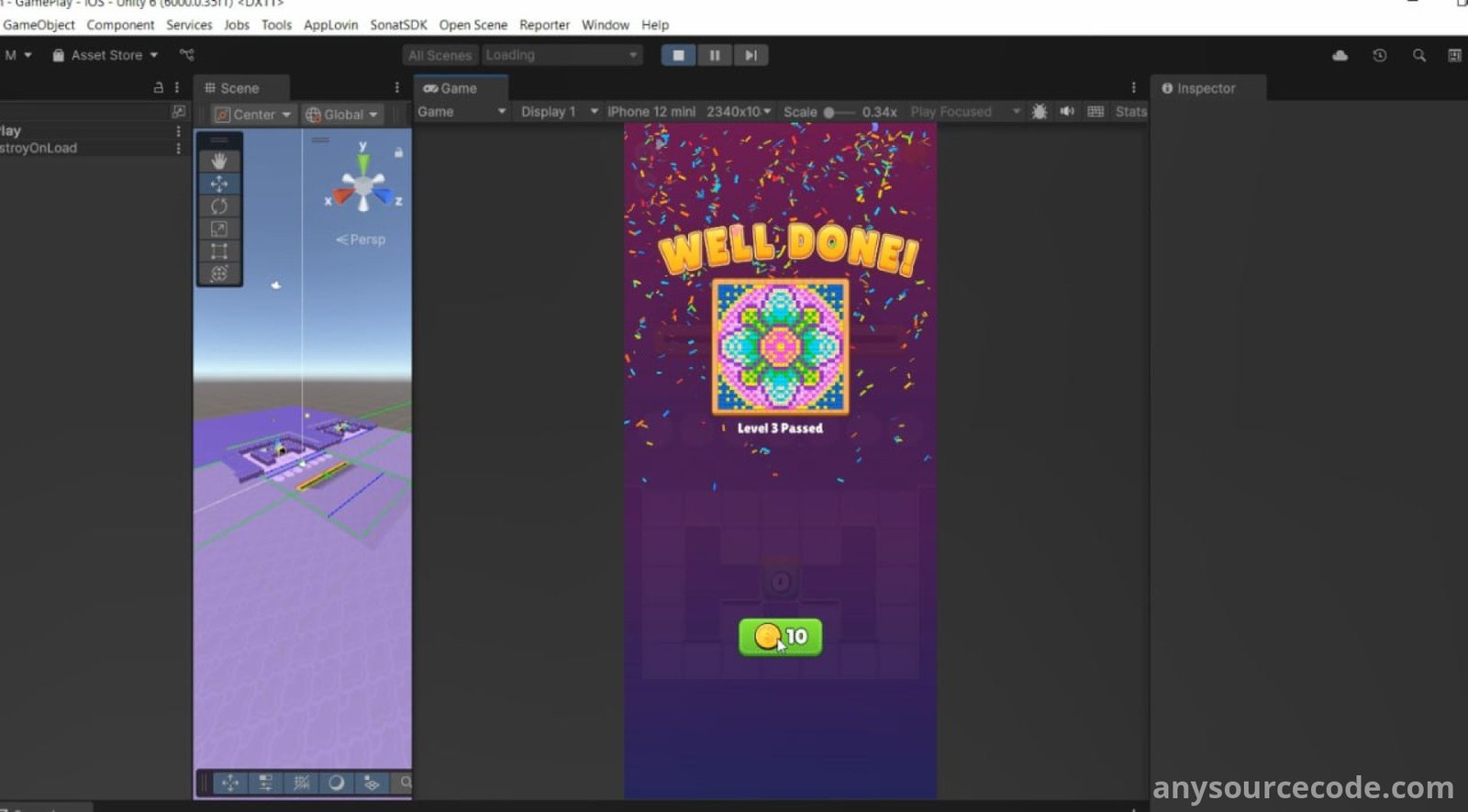 Featuring over 350 handcrafted levels, the game offers a steadily increasing difficulty curve that rewards smart thinking without frustration. Built with Unity 6, this project is fully optimized for mobile platforms and ready for quick reskinning and publishing.