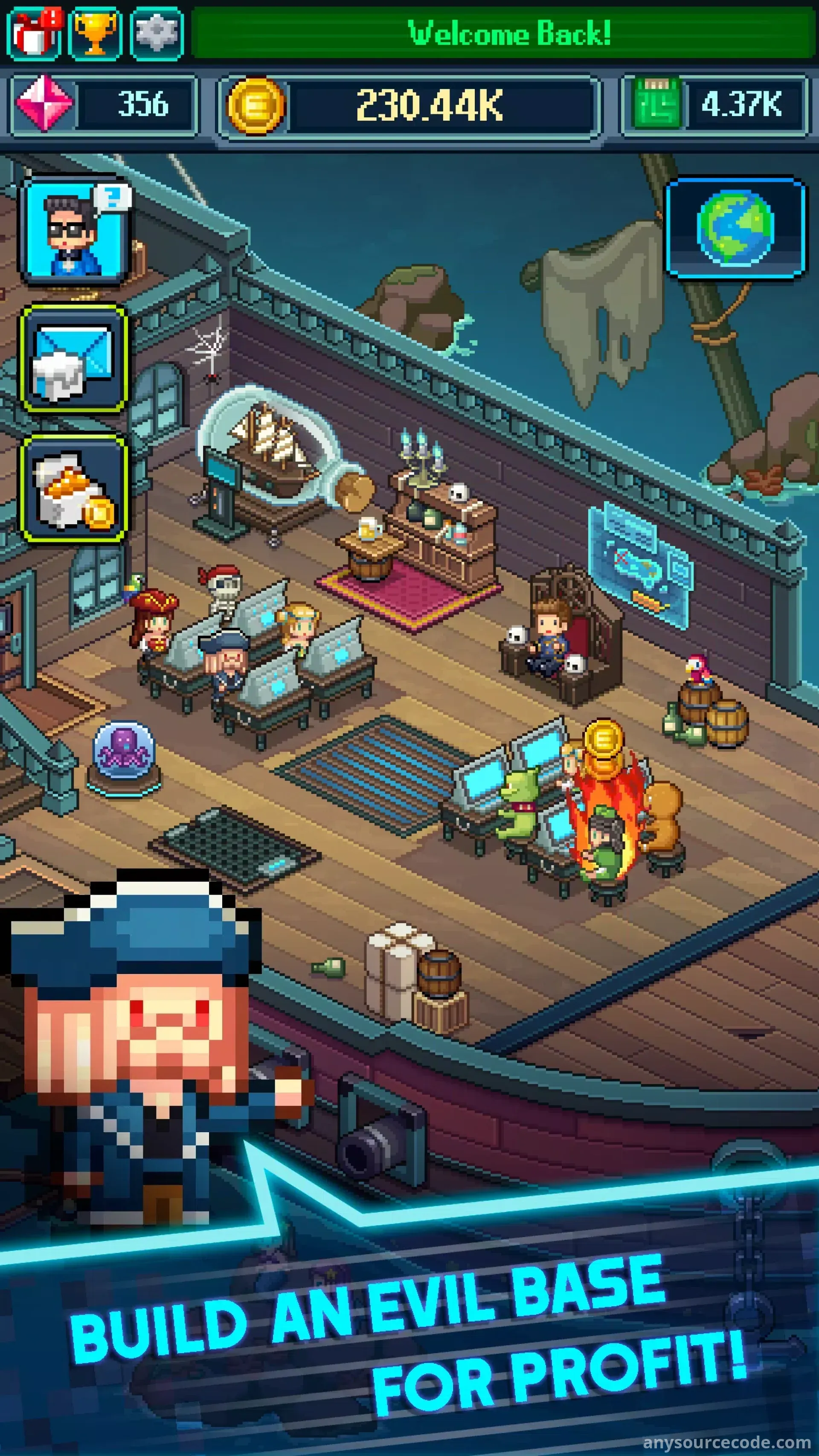 - Decorate and customize your evil headquarters with villain-themed items