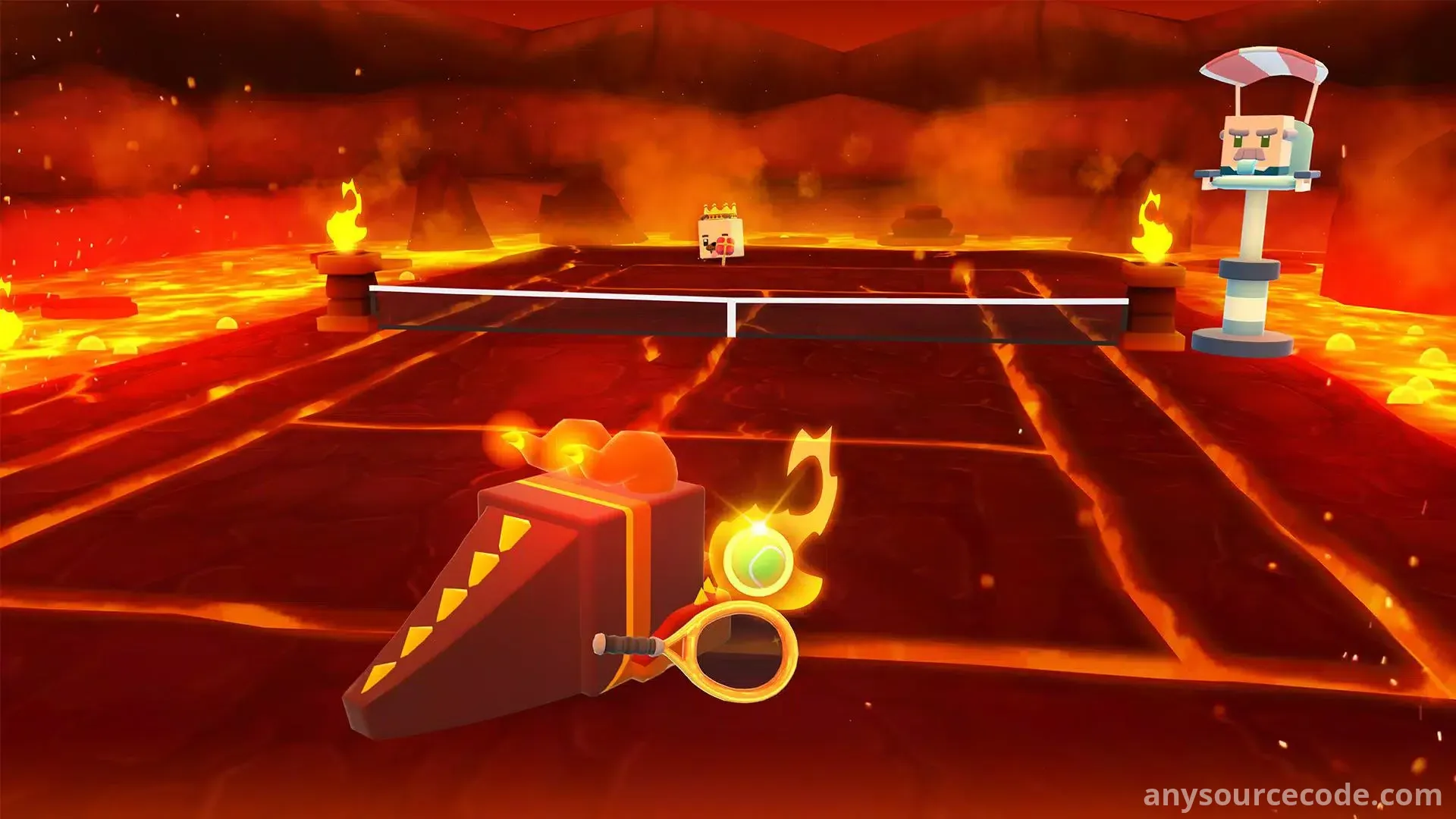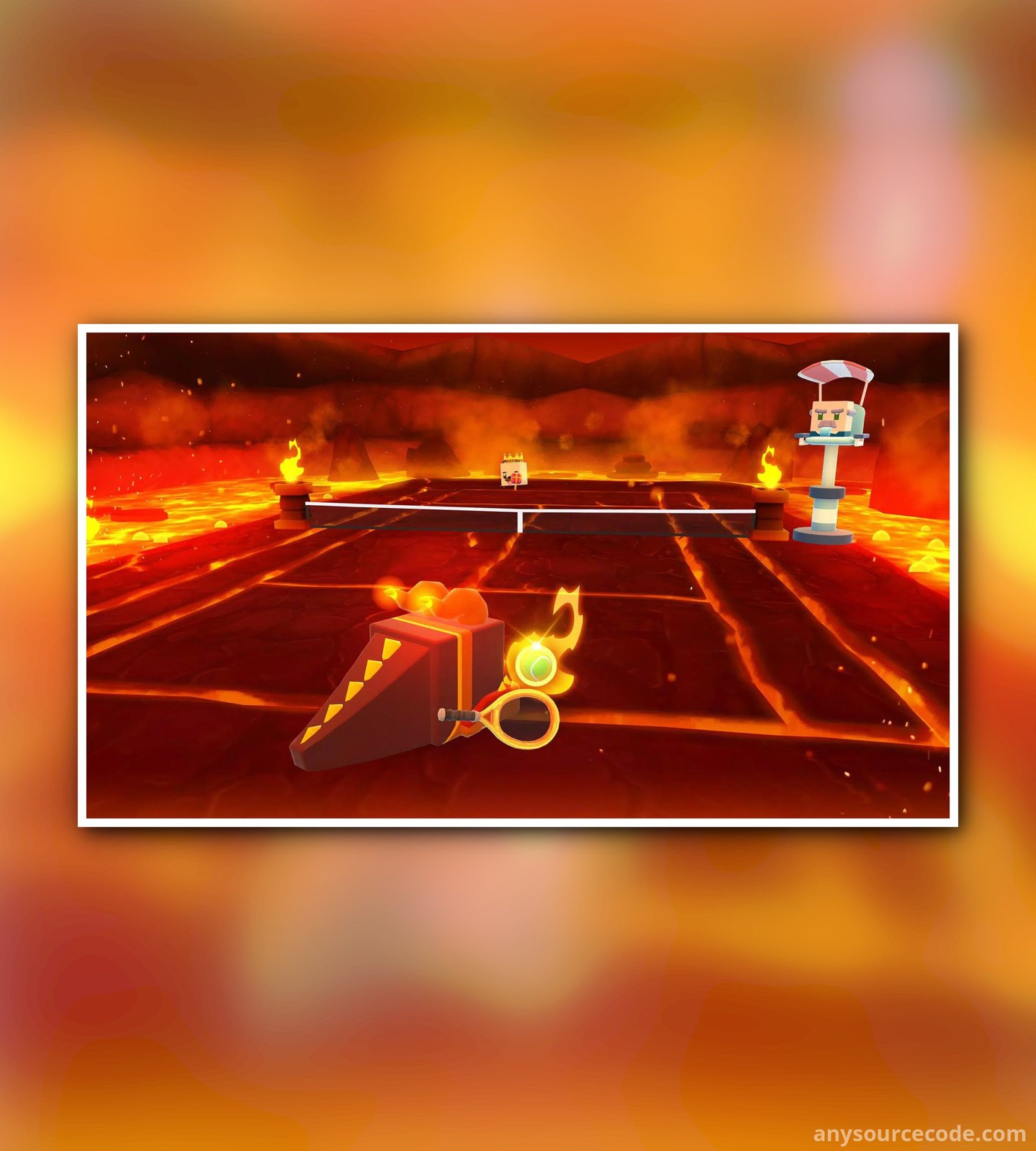 The game combines simple arcade controls with entertaining character designs and customizable gear. Players can unlock dozens of characters, rackets, and hats while competing across unique environments ranging from classic stadiums to unusual arenas like lava pits.