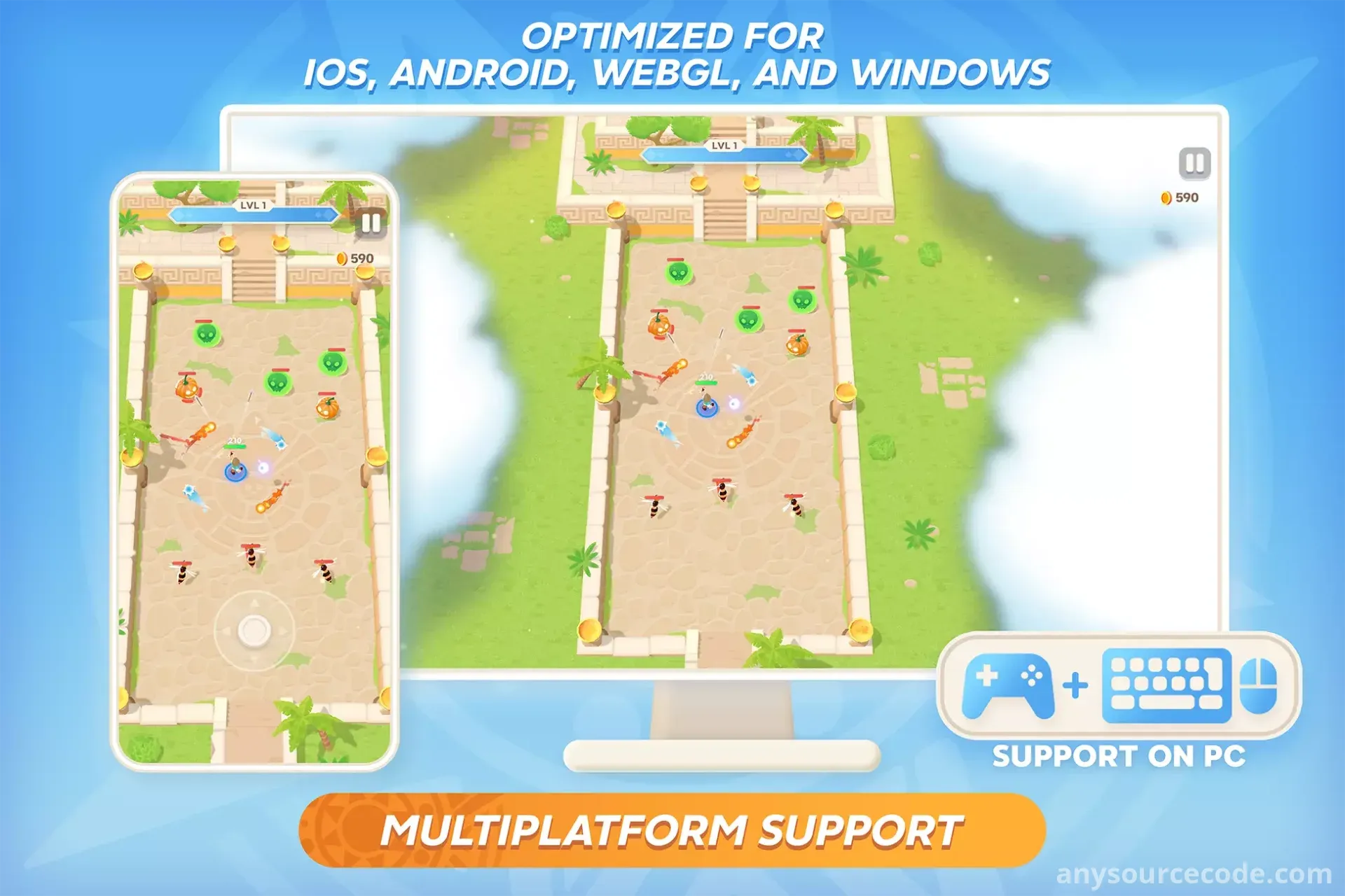 - Supports wave-based and room-based gameplay