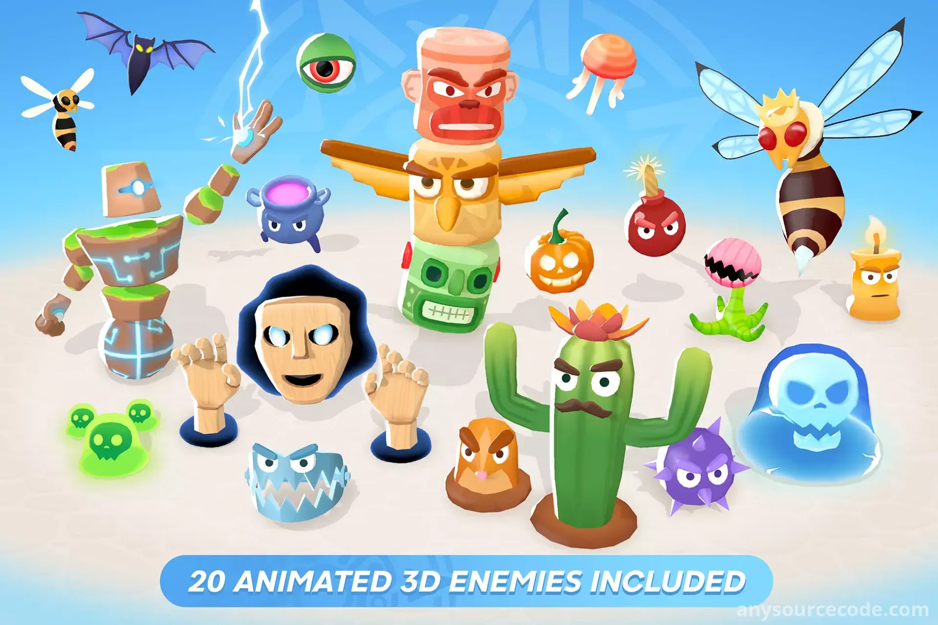 - 14 animated 3D enemies with unique behaviors