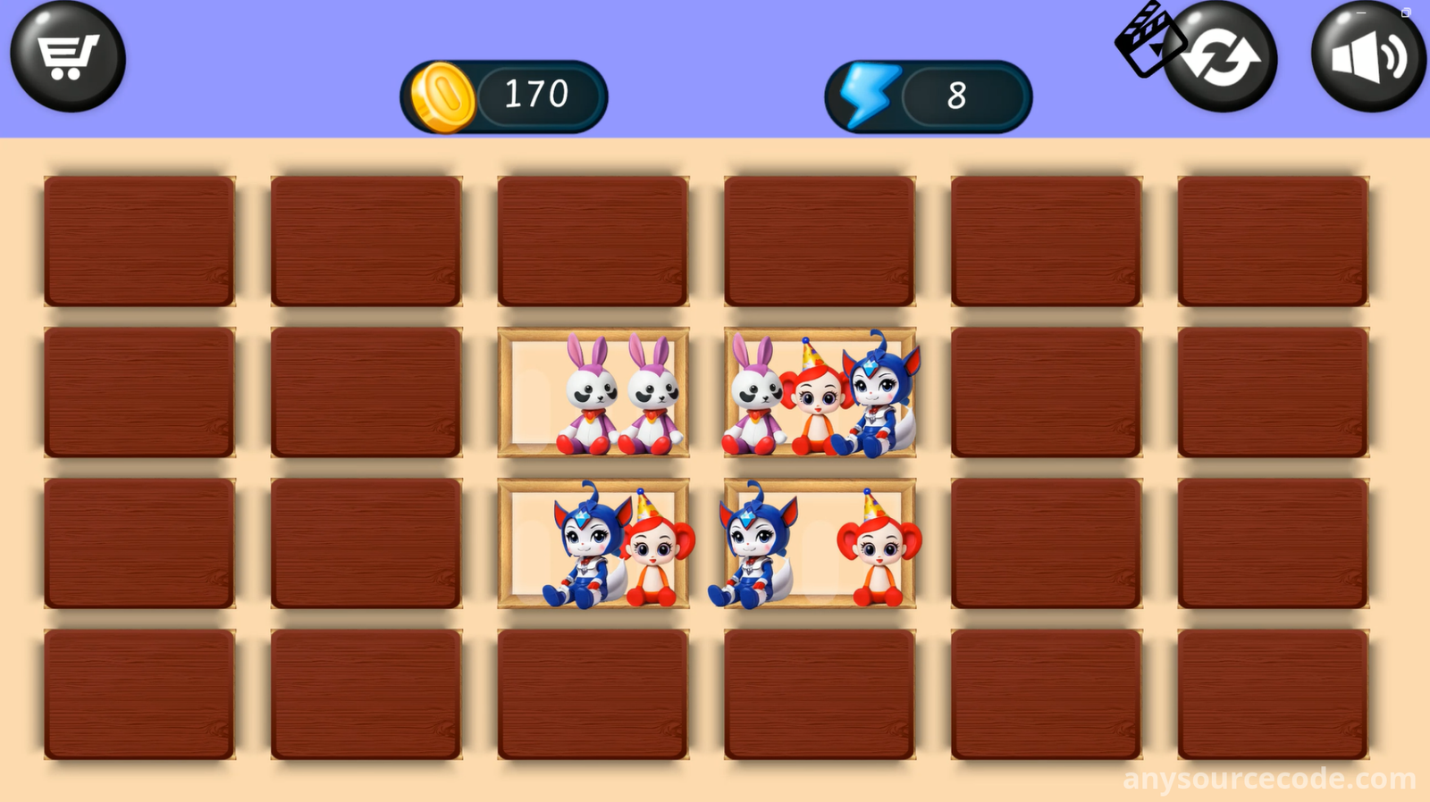 This is a casual memory puzzle game where you flip tiles and match pairs of cute toy characters. The goal is to clear the board by remembering where each toy is hidden. Earn coins, unlock new characters, and progress through increasingly challenging levels. Choose your assistant, upgrade your store, and become the best toy collector in town.