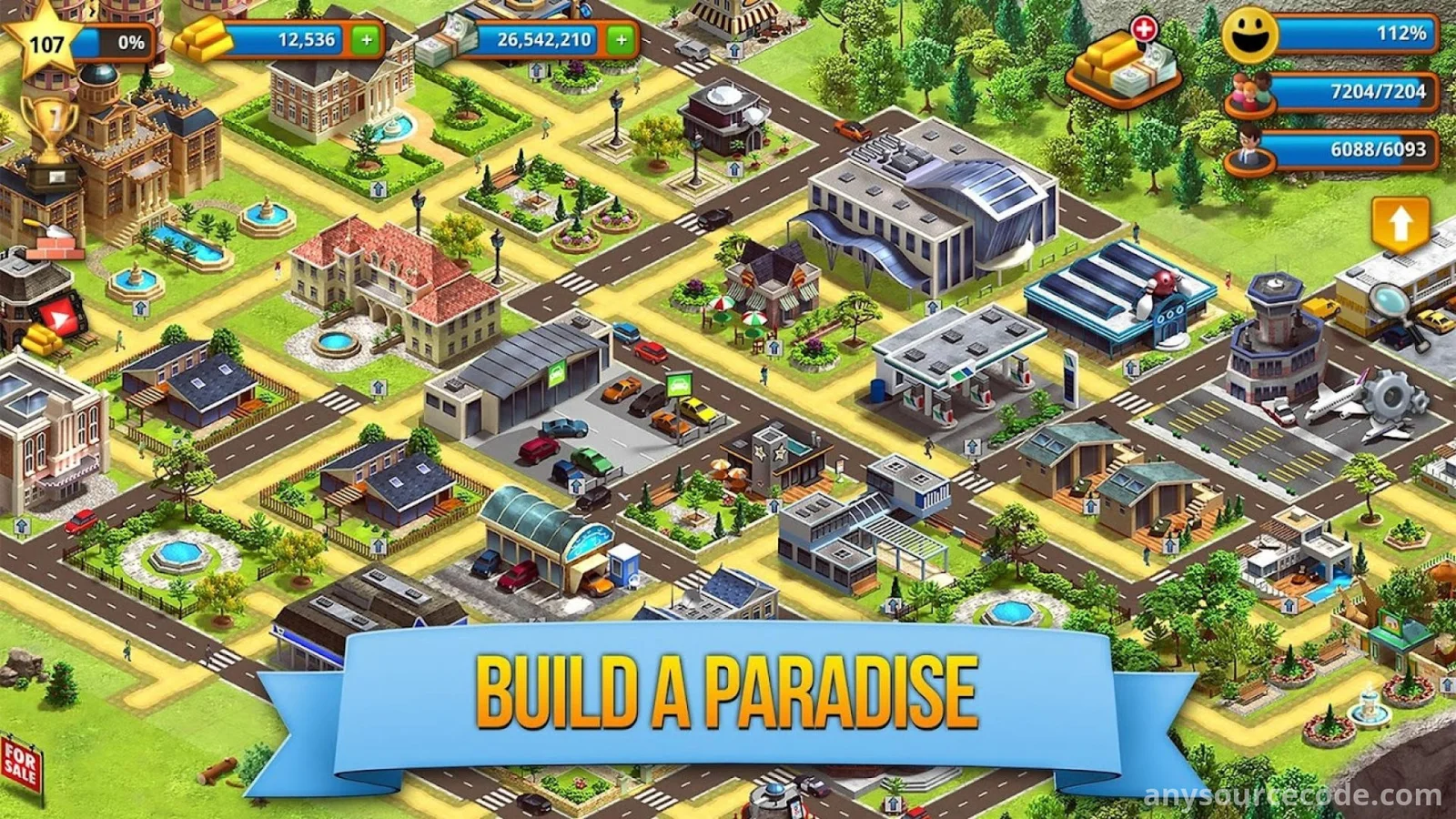 Start from a small deserted island and transform it into a thriving tropical metropolis. Construct homes, resorts, shops, and landmarks while keeping your residents happy and your island flourishing. With vibrant graphics and endless creativity, this tropical city builder lets you design, expand, and manage your dream world at your own pace.