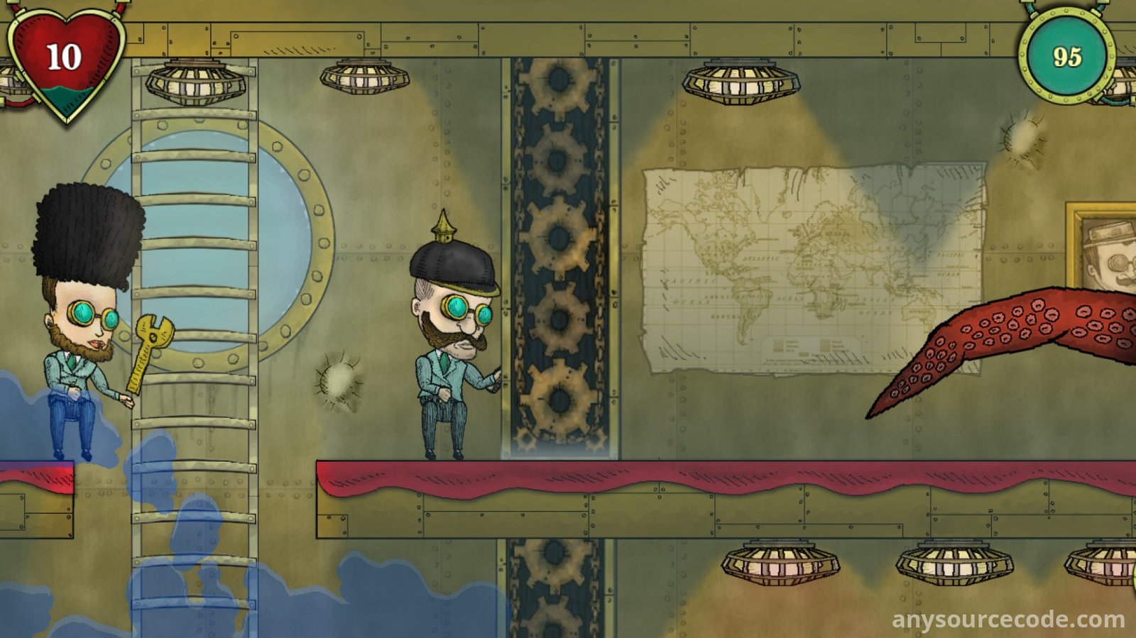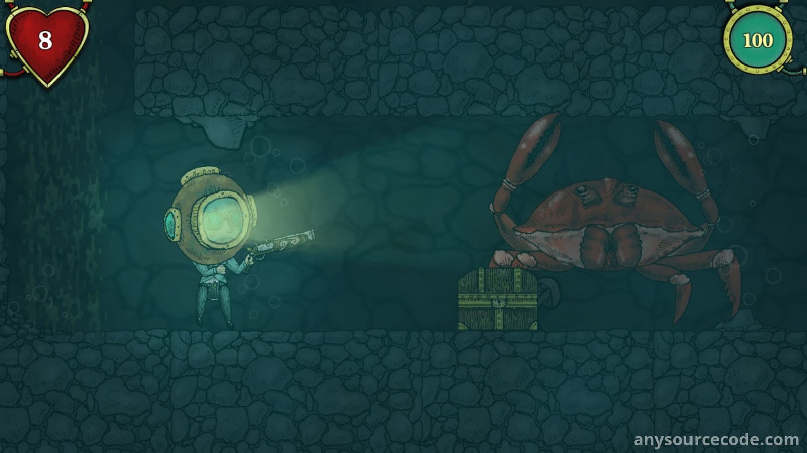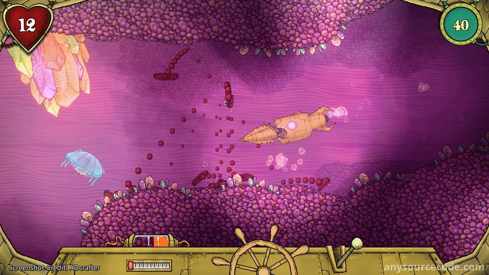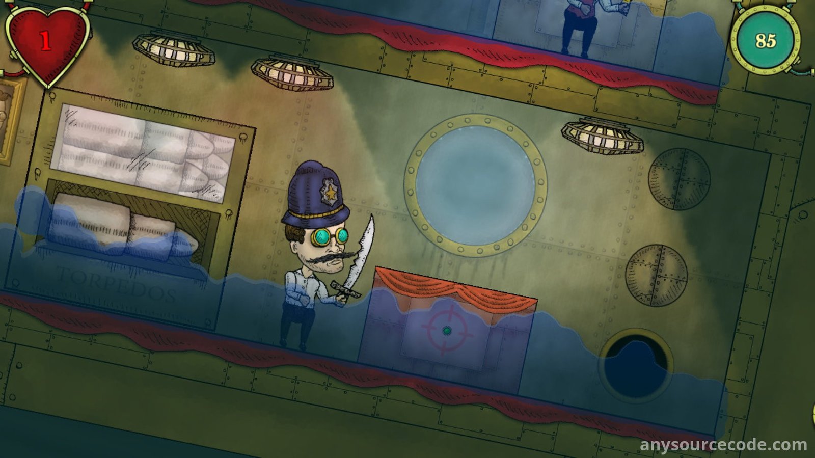 - Crew-based submarine mechanics: pilot, repair, reload, and manage systems